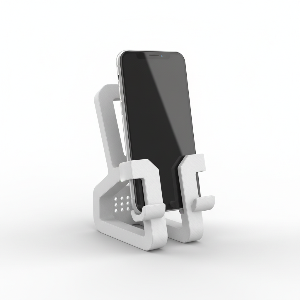 A sturdy and stylish 3D printed phone stand that keeps your device at the perfect viewing angle. Compatible with all phone sizes.